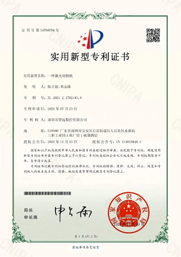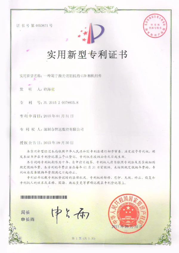 Körzeti Beszéd; Módszer a fotópapír minták és lézercsökkentő berendezéseinek vágására; Kettős lézerfejű vágógép; A vizuális felismerésen alapuló lézervágógép; Lézeres optikai útkapcsoló eszköz; Egy lézercsökkentő gép; Sebességváltó eszköz egy lézervágó géphez; CCD -kamera szerelvény egy lézercsoporthoz;