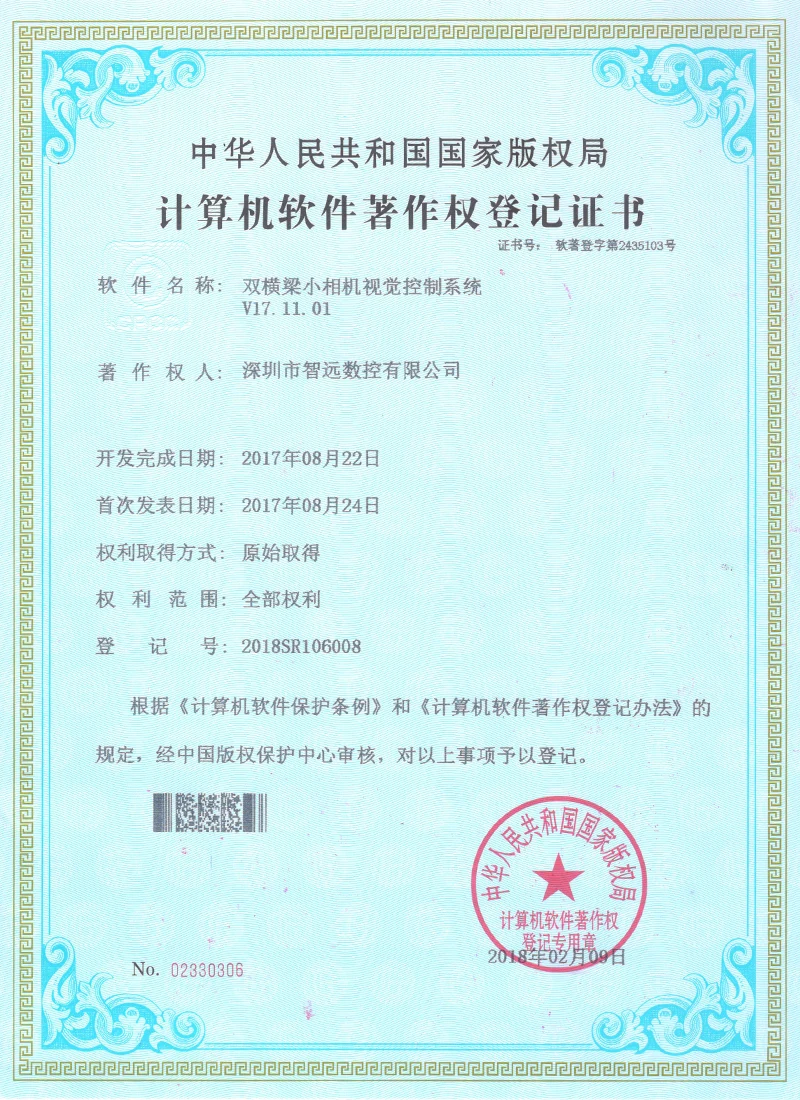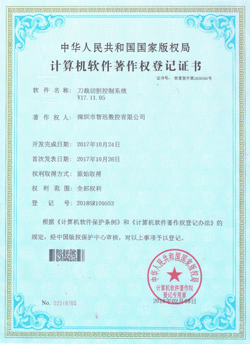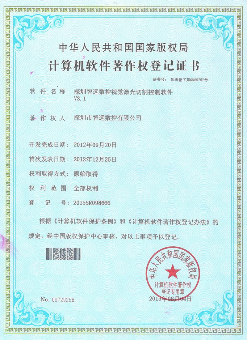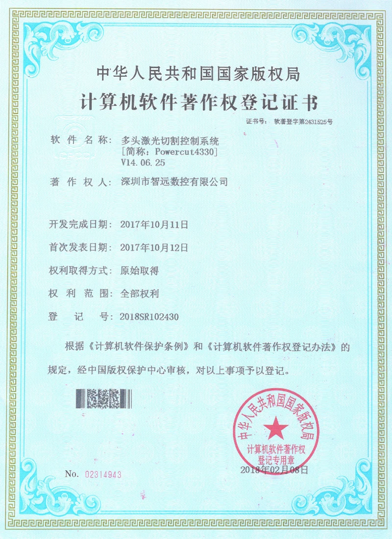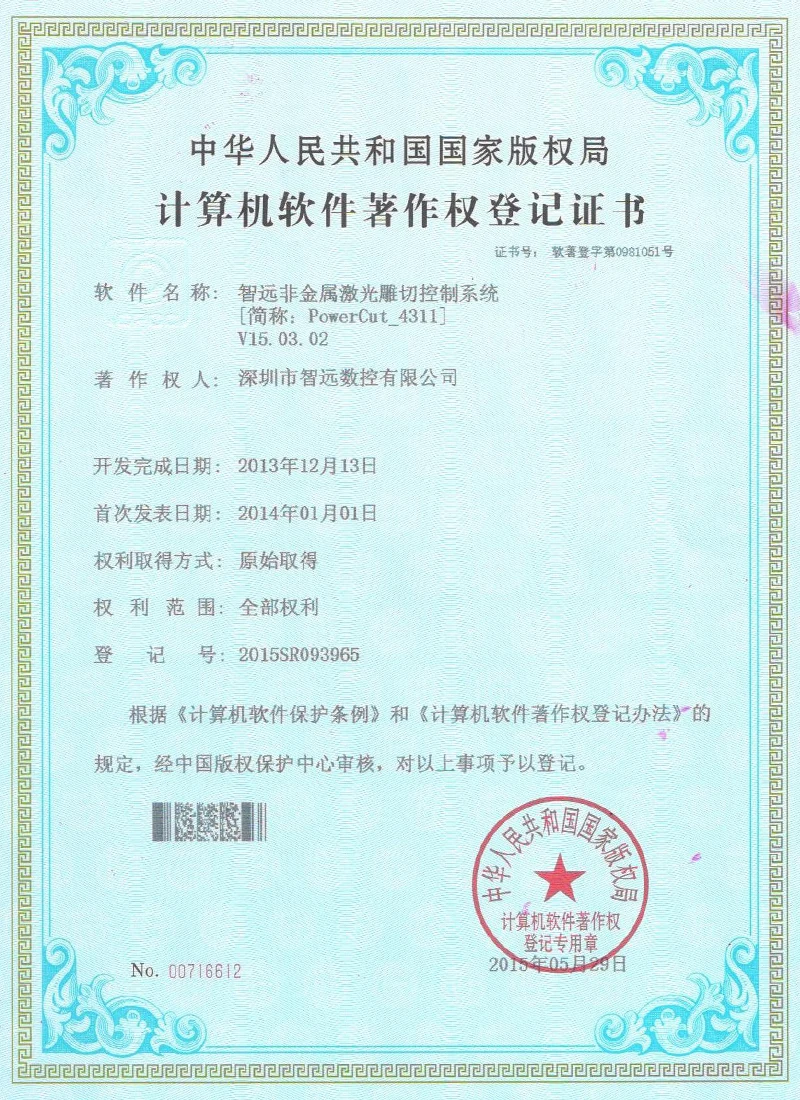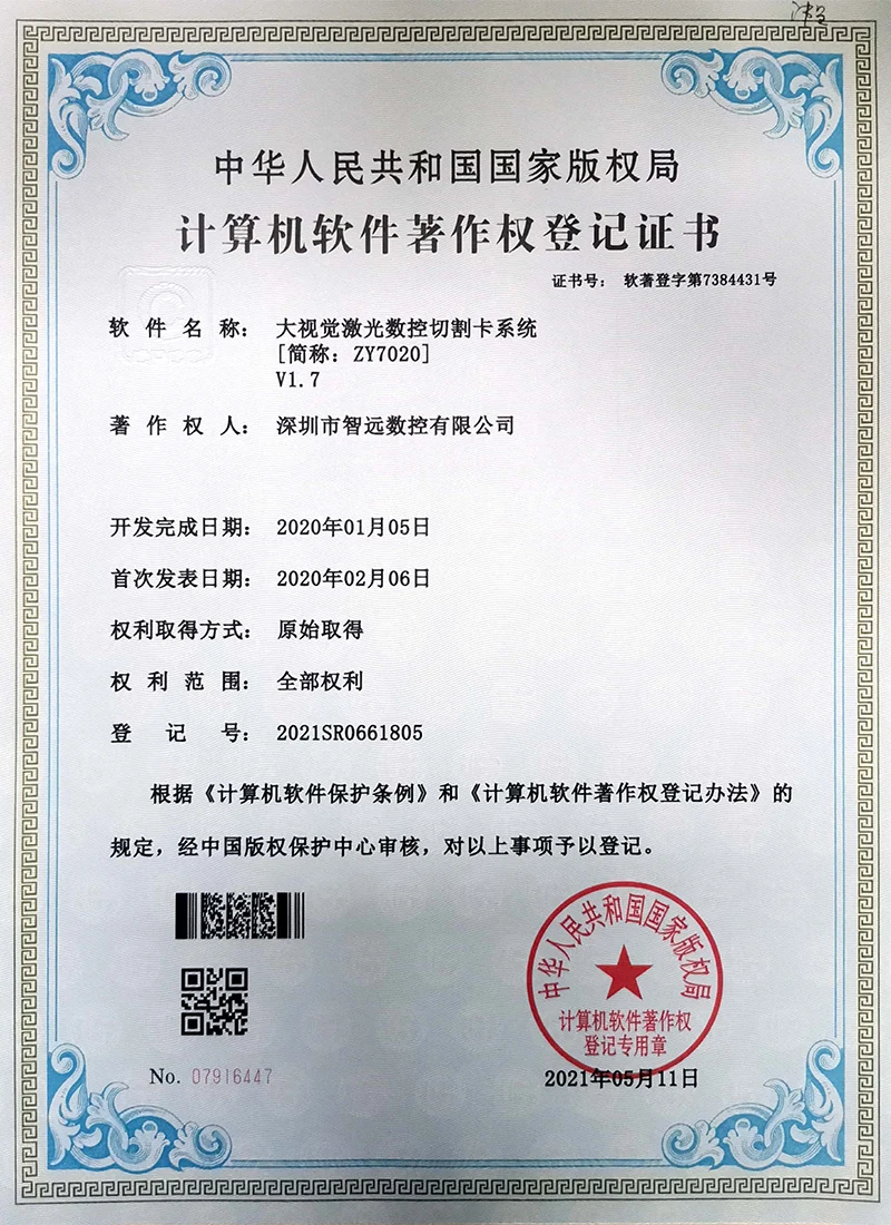 Vetítés online lézeres vezérlő rendszer; MARK point vision online laser control software; Galvanométer kettős repülés offline vezérlőrendszer; Vibrációs késvezérlő kártya rendszer v2; Kis látás online automatikus csavaros zárógép vezérlő kártya rendszer v12; Ablakpapír -géprendszer; Zhiyuan Galvanométer lézeres vágó rendszer szoftver; Kettős gerenda kölcsönös mozgásvezérlő rendszer; Shenzhen Zhiyuan CNC Visual Laser Cuting Control szoftver.