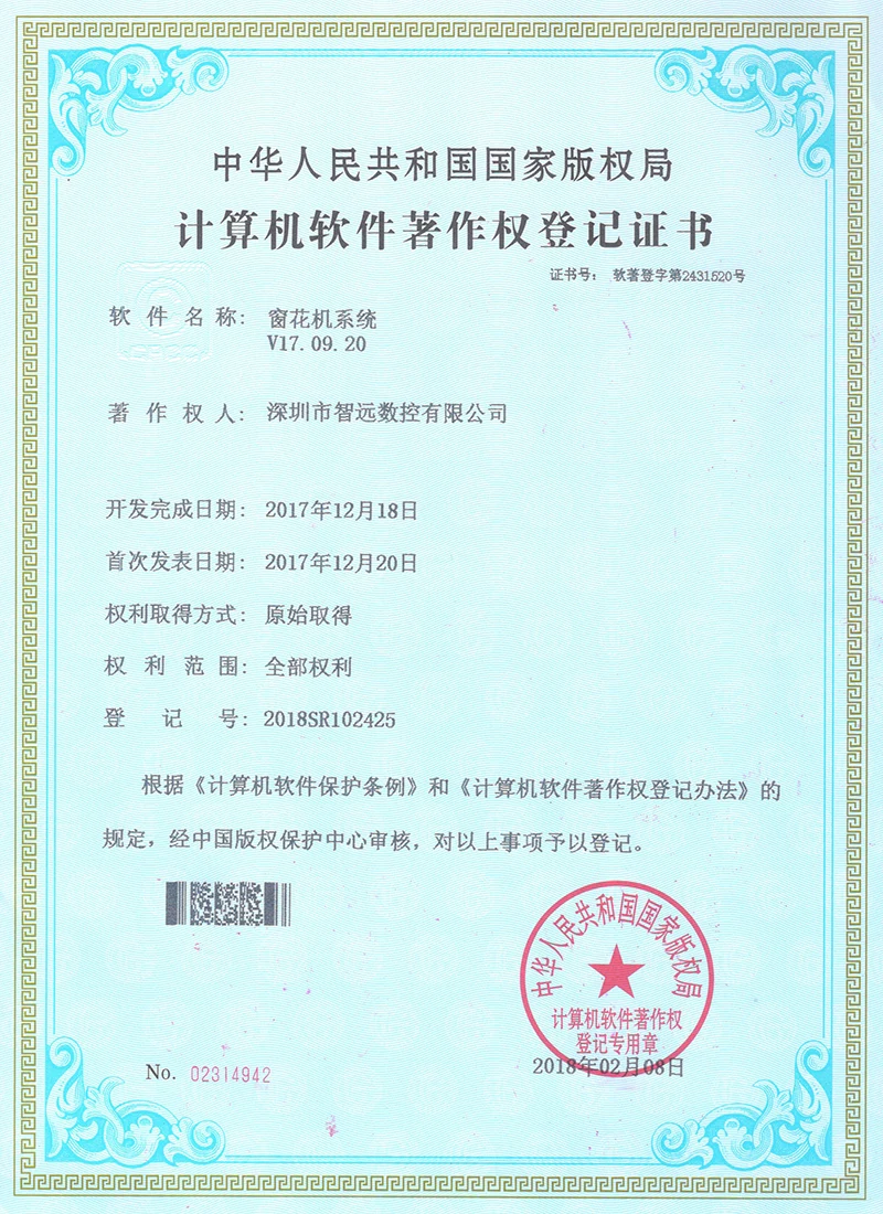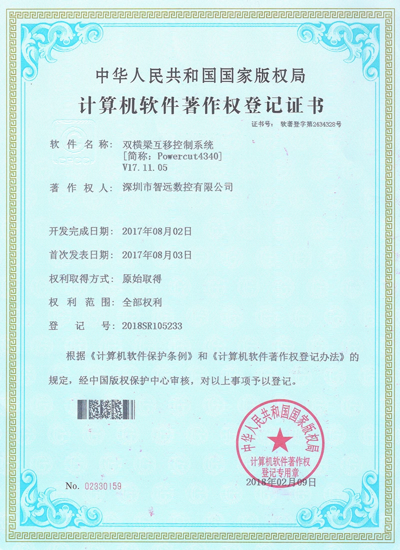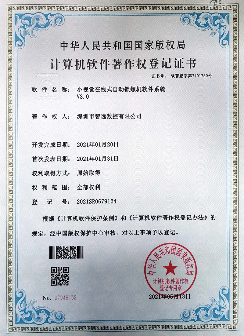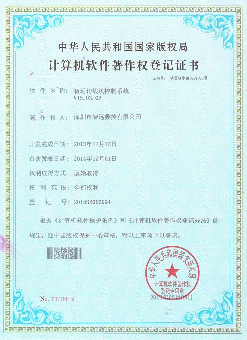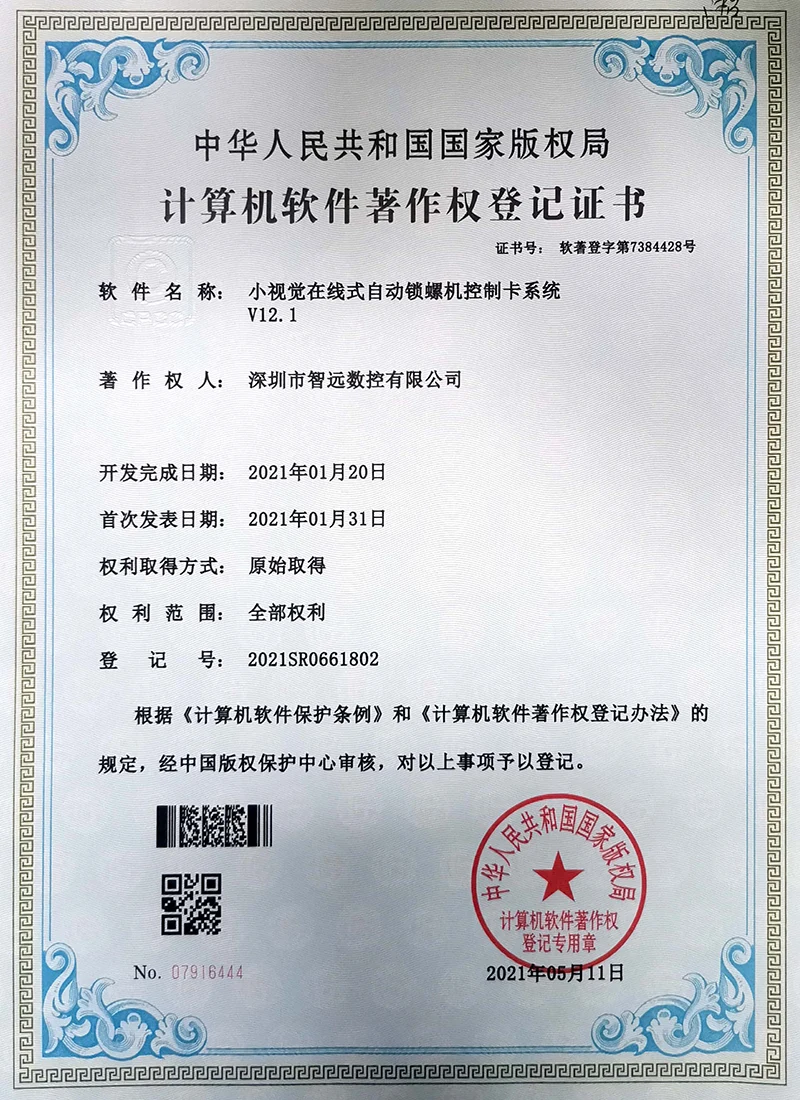 Vetítés online lézeres vezérlő rendszer; MARK point vision online laser control software; Galvanométer kettős repülés offline vezérlőrendszer; Vibrációs késvezérlő kártya rendszer v2; Kis látás online automatikus csavaros zárógép vezérlő kártya rendszer v12; Ablakpapír -géprendszer; Zhiyuan Galvanométer lézeres vágó rendszer szoftver; Kettős gerenda kölcsönös mozgásvezérlő rendszer; Shenzhen Zhiyuan CNC Visual Laser Cuting Control szoftver.