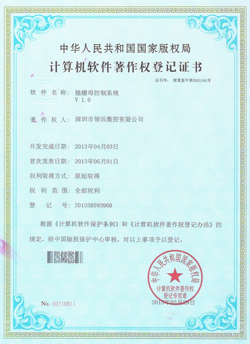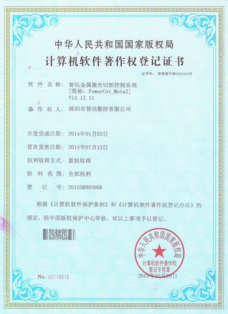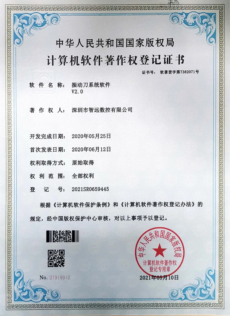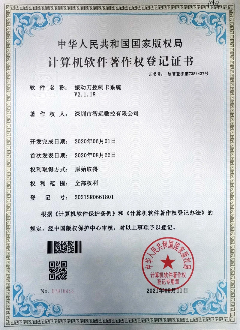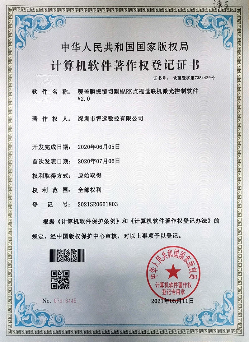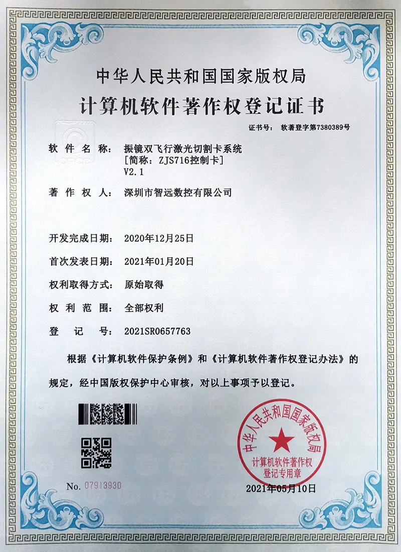 Galvanometer small vision online laser control software; Keret repülésvágó vezérlő rendszer v1; Kis Vision Laser CNC Cutting Card rendszer; Nagy Vision Laser CNC Cutting Card rendszer; Vibrációs kés rendszer szoftver v2; Többfejű lézervágó vezérlő rendszer; A tárgyak internete 4G helymeghatározó rendszer; Kettős sugárú kis kamera látásvezérlő rendszer; Dióültetési vezérlő rendszer; Dinamikus galvanométer repülési jelző szoftver;