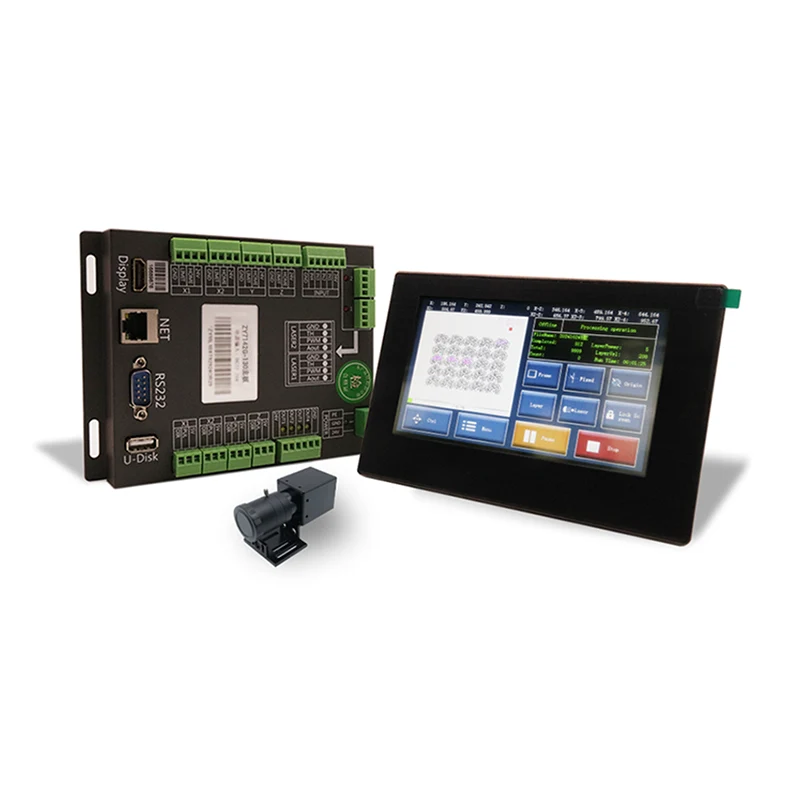 A Visual Positioning Laser Control Board 1,3 megapixeles ipari kamerát használ, amely pontosan tudja azonosítani és beállítani a vágási sablonokat. Ez a rendszer támogatja a 4 tengelyes vezérlést, és 7 hüvelykes érintőképernyővel van felszerelve, amely lehetővé teszi az egyszerű kezelést és vezérlést. Támogatja a többsablon-felismerő funkciót, amely lehetővé teszi több sablon egyidejű feldolgozását és nagy pontosságú vágást.
