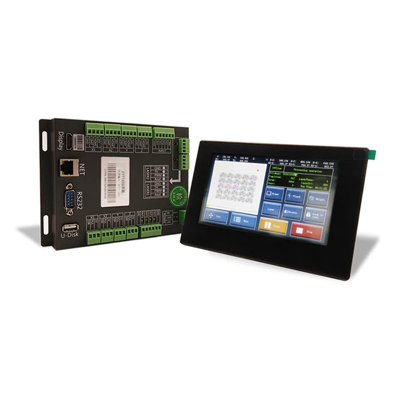 A ZY7142G lézervágó és gravírozási vezérlőpultot a Zhiyuan CNC indítja. Támogatja a 4 tengelyes vezérlést, és egy 7 hüvelykes érintőképernyővel van felszerelve, amely több lézertípushoz alkalmas, beleértve az RF lézereket és a Co₂ Glass Tube lézereket.